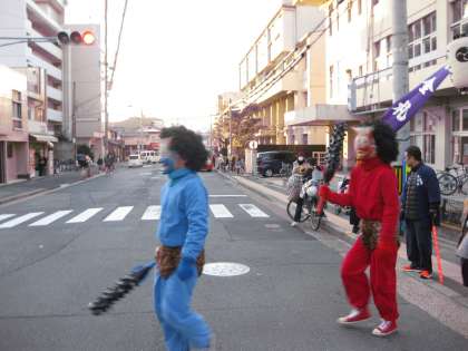 金札宮の行事で,校区を鬼と福の神がまわって,おはらい?をしておられるようです。