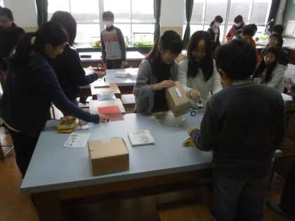 電気自動車を渡すと,6年生は自分たちで研究を始めました。