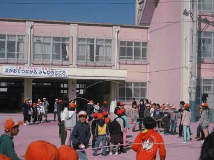 今日は,縦割りグループに分かれて,大縄跳び大会がありました。どのグループも優勝を目指して一生懸命に取り組みました。