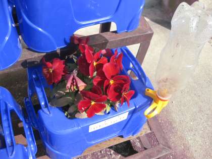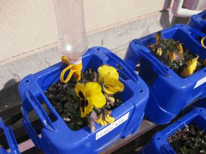 アサガオを育ておわり,パンジーを育てていた1年生ですが,とても綺麗に咲いています。今日は,寒い日ではありますが,穏やかな太陽の光に照らされて,なお一層その美しさが引き立っています。