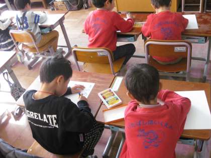歌やダンスが終わった後は,お絵かきです。みんなのびのびと描けていました。少しの時間でしたが,どの子も楽しく過ごせたように思います。