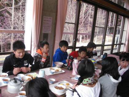 しっかりと活動したのでお腹がすいてきました。山の家での食事は,1年ぶりでしょうか?みんなモリモリとおいしくいただきました。