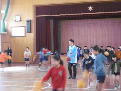ドリブルをしながら鬼ごっこをしたり,選手の素晴らしいプレーを見せてもらいました。現在,ハンナリーズはリーグで1位のようです。また,応援に行ければいいですね。