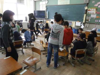 今年度最後のわくわくタイムは教室で足バトンリレーなどをしました。