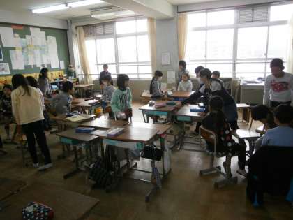 たてわりグループにわかれて,活動を行う「わくわくタイム」。