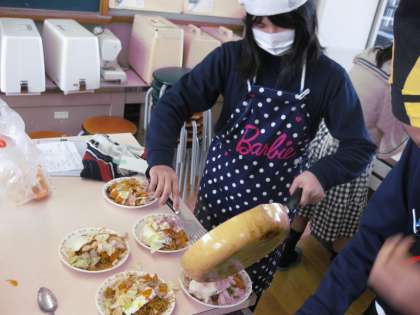 とてもおいしそうに出来上がりました。これが,小学校最後の調理実習です。みんな,おいしくいただけたようです。思い出に残る会食ができたのではないでしょうか。