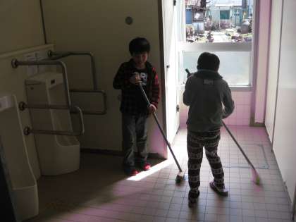 トイレも洗面所も,まだ水は冷たいですが,黙々と清掃活動を頑張っています。管理用務員さんもありがとうございました。
