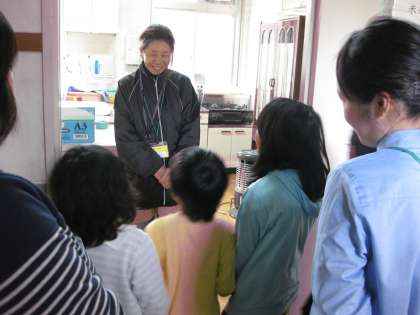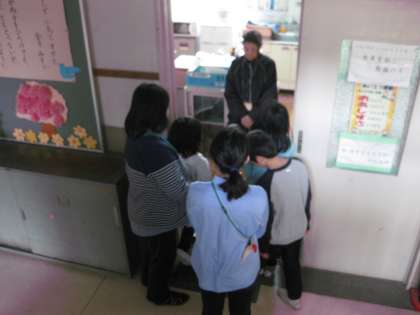 「ここで『心を込めていただきます。』というのだよ。」という声が聞こえてきました。ひまわり学級のお友達が,普段の生活で特に必要な場所を,1年生に教えています。よくお世話になる管理用務員さんのお部屋にも訪問しました。