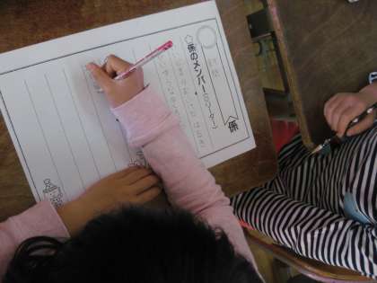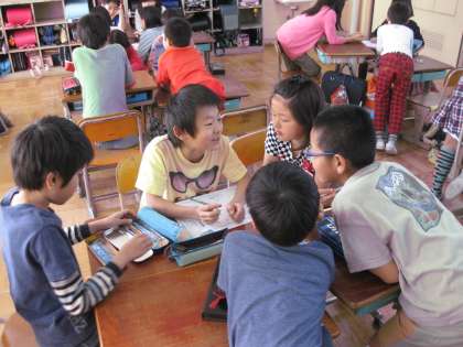何の計画でしょう・・・? 係り活動の計画中でした。自分たちで活動内容を考えて,みんなを楽しませたり,クラスの役に立ったりできます。自主性・自発性・自治性が育つ大事な活動です。