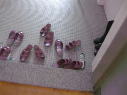 綺麗に並べることが目的ではないのです。次の人のことを考えて,せめて履きやすいように、スリッパの先をお便所の方に向けてほしいのですが。