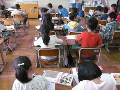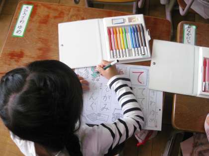 1年生は,しばらくの間,同じ時間割で学習が進みます。3クラスとも国語の時間でした。