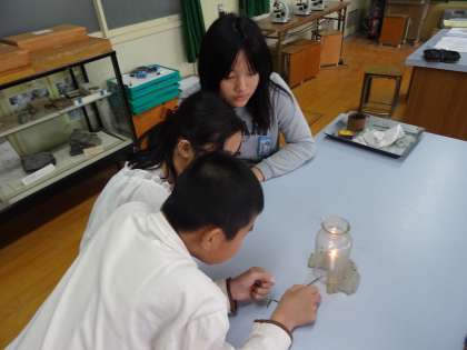 ろうそくが燃え続けるように工夫し,器具等を適切に扱い,実験をしました。