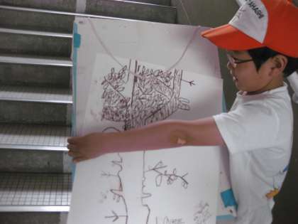 「くぼ柿かいたよー!」と4年生の子が,描いたばかりのくぼ柿の線画を見せてくれました。南側の枝が枯れていたので昨年伐採しました。去年の4年生もくぼ柿の写生をしていましたが,今年はちょっと簡単になったかな?????