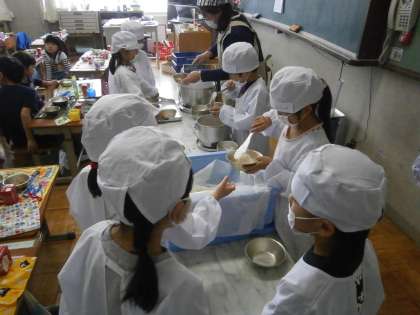 1年生は給食当番をがんばっています。