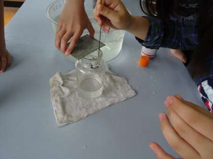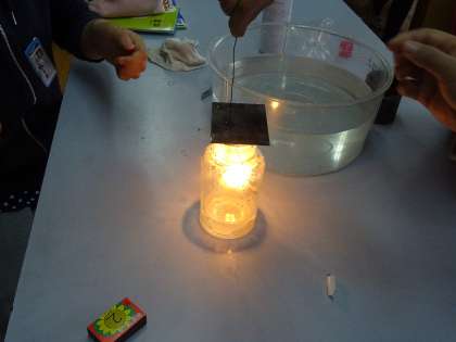 ものを長く燃やし続けるにはどうすればよいかを考え,実験しました。