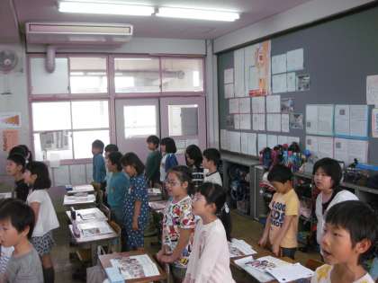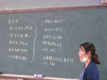 3年生の教室から綺麗な歌声が聞こえてきました。全校集会でうたう歌の練習中です。体育館が歌声でいっぱいになればいいですね。