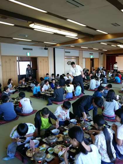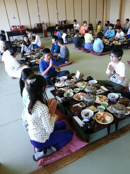 各々の部屋に入り,荷物整理を終えたは夕食です。お刺身などが出て,おいしく頂きました。