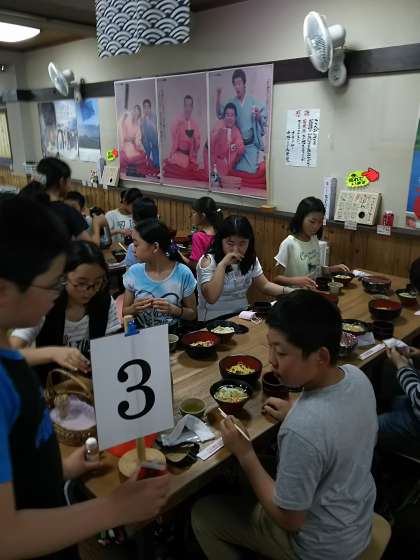お昼は,中野うどん学校で頂きました。メニューはうどんとちらし寿司です。本場の讃岐うどんはさすがにコシがちがいます!