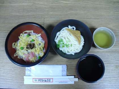 中野うどん学校へ戻り,ちらし寿司と讃岐うどんをいただきました。