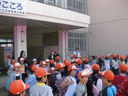 8時に集合して府庁前まで行きます。さあ,出発です。どんなのことを学ぶのかみんな期待でわくわくしていました。
