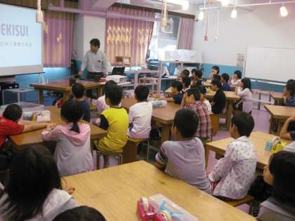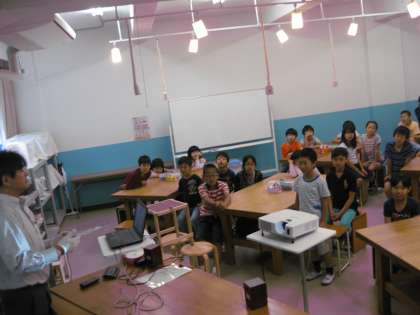 いよいよ学習の始まりです。A班とB班に分かれて,もの作りと点字学習をします。もの作りは,強化ガラスの仕組みを学習して,自分たちでも実際に作ります。