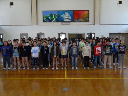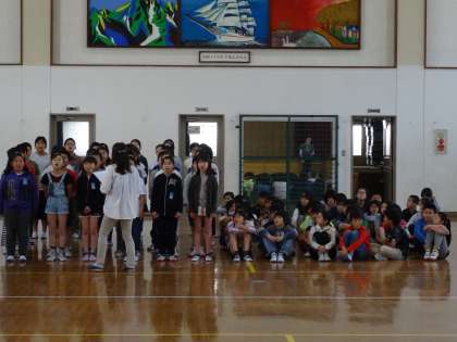 お迎え集会に向けて,学年合同で歌の練習をしました。