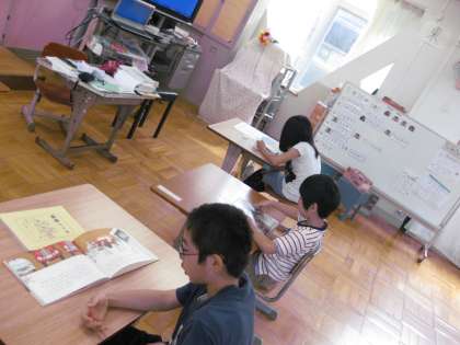 ひまわり学級は,人数が少ないので健康観察もはやく済みました。その分,ゆっくりと時間をとって読書タイムです。
