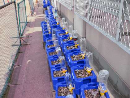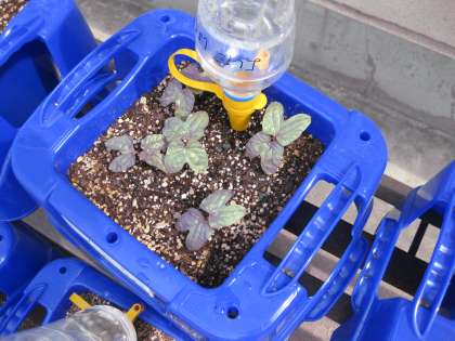 1年生が植えたアサガオの芽が出て,どんどん成長してきました。子どもたちは毎日,セッセと水やりをしています。早く大きくなって花が咲けばいいですね。