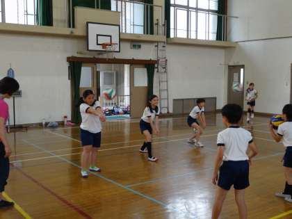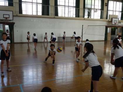 体育館では,バレーボール部が活動していました。トスやレシーブの練習を頑張っていました。