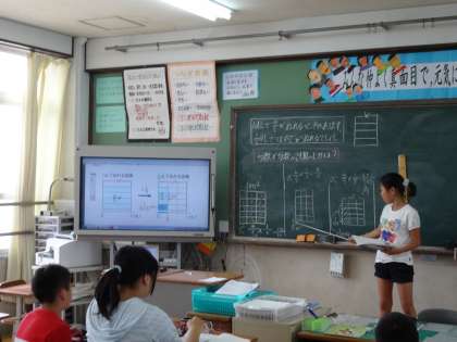 (分数)×(分数)の計算の仕方を考え,説明しました。