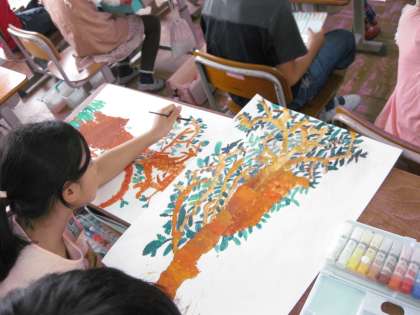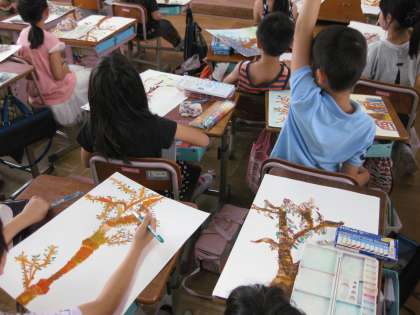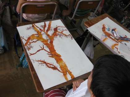 学校の木とも言える「くぼ柿」の写生を今年も4年生が取り組みました。そろそろ完成です。木の幹の色もとても素晴らしい表現です。