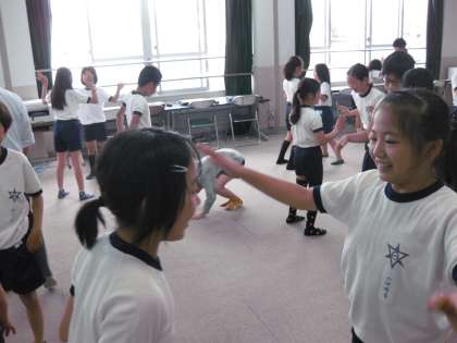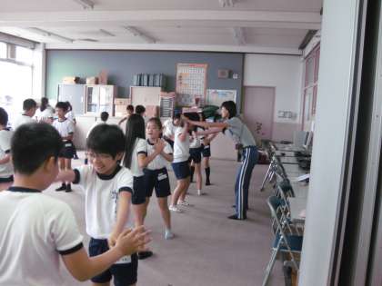 5年生が板橋ホールで「体ほぐしの運動」をしていました。上体をうまく使いバランスと反射神経が必要です。本年度より,各学年の単元がうまく連続してできるように,板橋ホールも体ほぐしなどの狭い場所でもできる運動で利用しています。