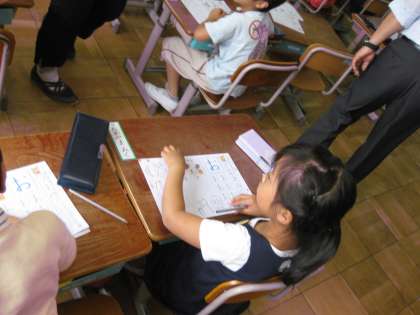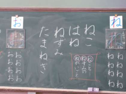 平仮名を学習している1年生ですが,だんだん難しくなってきました。「お」も「ね」も,難しいですね。頑張ってください。