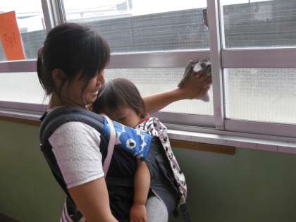 子どもたちの手の届かない高いところの拭き掃除をしていただいたり,保護者の中には,小さいお子さんを連れてきていただいたりしました。本当にありがとうございました。
