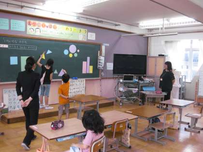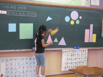 2時間目の授業が始まりました。ひまわり学級では,図形の仲間分けをしています。仲間分けをした理由もしっかりとお話しできていました。