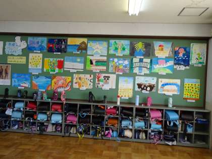 「想像のつばさを広げて」の単元で学習した作品を掲示しています。