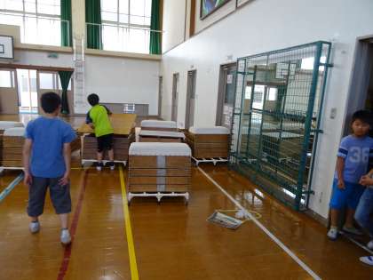 5・6年生で協力して,体育館内の整備をしました。