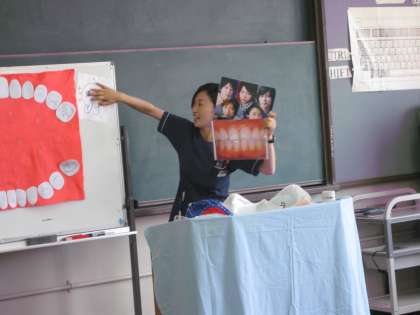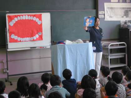 6月3日に歯磨き巡回指導がありました。対象はひまわり学級・1年生・4年生です。歯科衛生士の先生の楽しい語り口で,みんなドンドンと歯磨きのお話に引き込まれていきました。