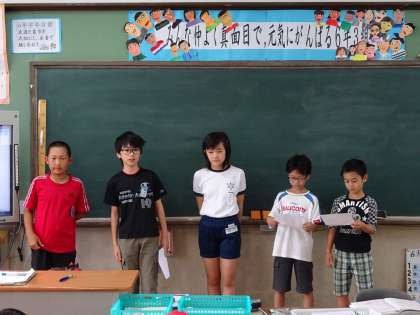 始業前に,集会委員会の子どもたちがわくわくタイムの説明に訪れました。