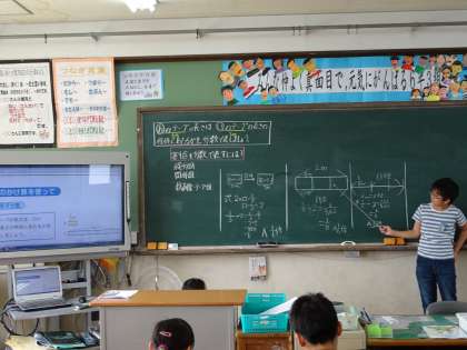 割合を表す分数を使った乗法の問題の解決の仕方を考え,説明しました。