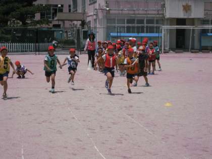 3年生が体育の授業でリレーをしていました。バトンパスのやり方で,順位が変わります。とのようにしたらチームの力を伸ばすことができるのでしょうね。しっかりと考えてくださいね。