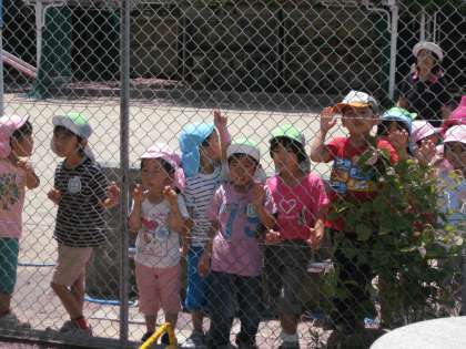 板橋幼稚園の園児たちが,うらやましそうにこちらを見ています。(^o^)