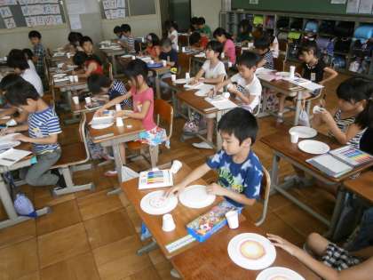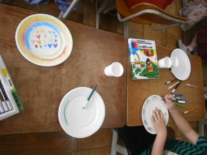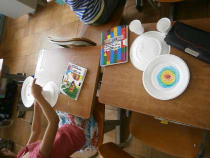 1年生は土曜参観の日に紙皿を使ってゆらゆらする工作を作りました。