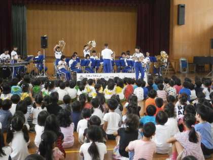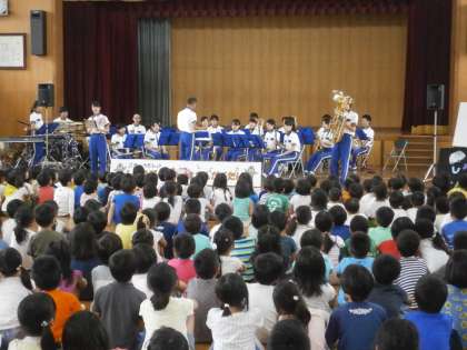 消防音楽隊の方々に伏見板橋小学校に来ていただいて,演奏していただきました。