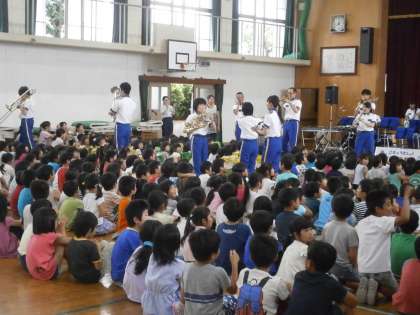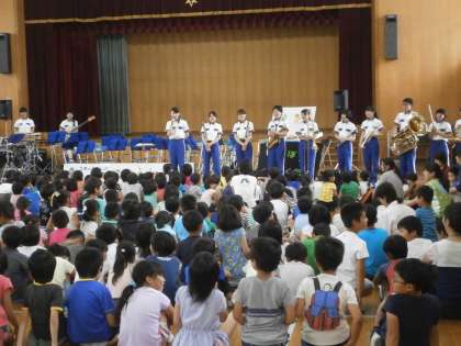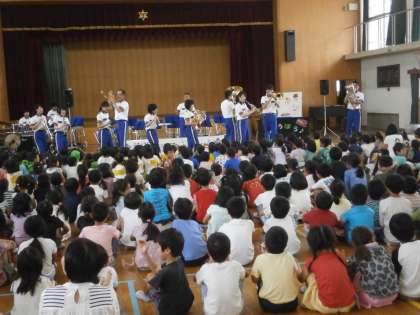 最後は勇気100%にあわせて子どもたちの近くまで消防音楽隊の人たちが来てくれました。