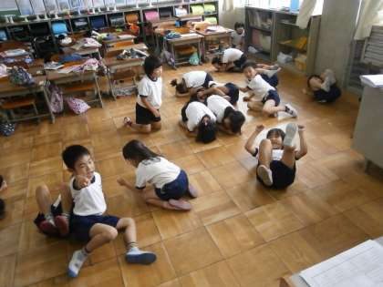 1年生は体育で「むしになって」をしました。