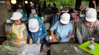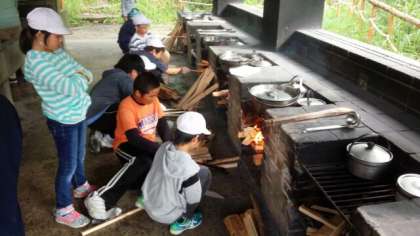 今日の野外炊事のメニューは,すき焼き風煮です。