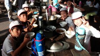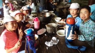 野外炊事では,みんなで協力して手際よく調理を進め,おいしいすき焼き風煮ができました!みんなしっかりと食べて大満足です。後は,しっかりと後片付けです。