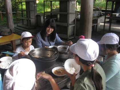 煙たいのを我慢して、みんなで協力して一生懸命に作りました。どの班もおいしく作れたようです。第1回目にしては上出来です。明日からが楽しみです。