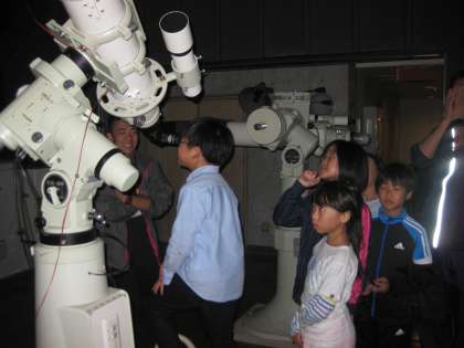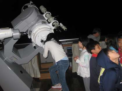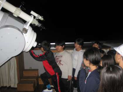 天体観測ができませんでした・・・ということで昨日のホームページは終わっていましたが、その後、なんとラッキーなことに空の雲が切れて星空が見えるようになりました。すると、すぐに所員さんが天体観測の用意をしてくださいました。